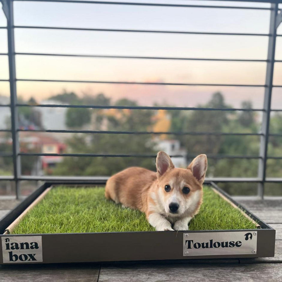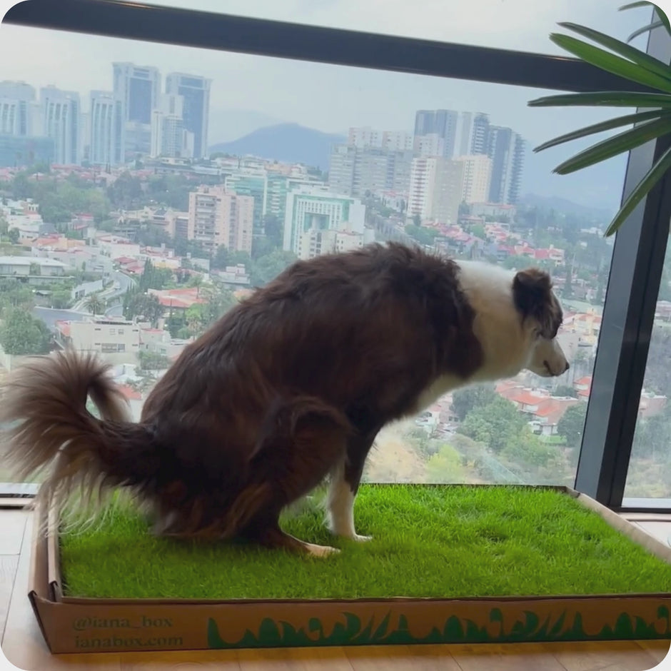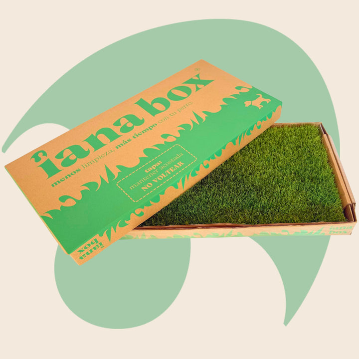 iana box es el primer tapete de pasto natural sin tierra para perros en México qu absorbe líquidos y controla olores.