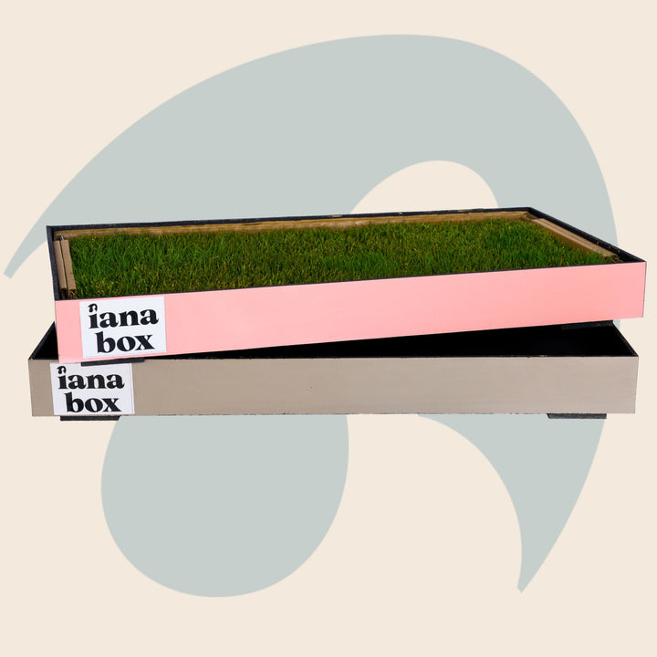 iana box es el primer tapete de pasto natural sin tierra, formulado para absorber líquidos y reducir olores.